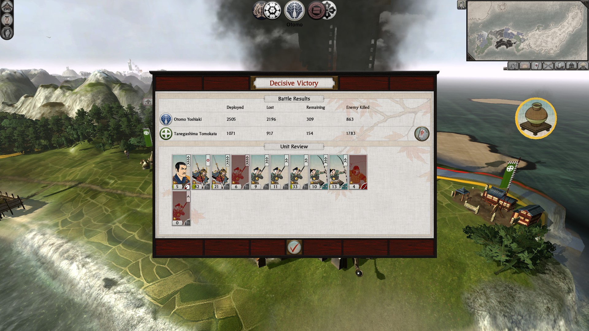 I thought I may have bought enough time to replenish my army or send re-enforcements. But just as the first Otomo army had been defeated the Ouchi returned with what little remained of their once mighty army. Again I fought them off but I was losing the war. With Buzen being at the fringes of my territory the troops I was producing in my capital Satsuma were months away. I had hired more ashiguru but I knew that if I faced another major engagement I was likely done for.