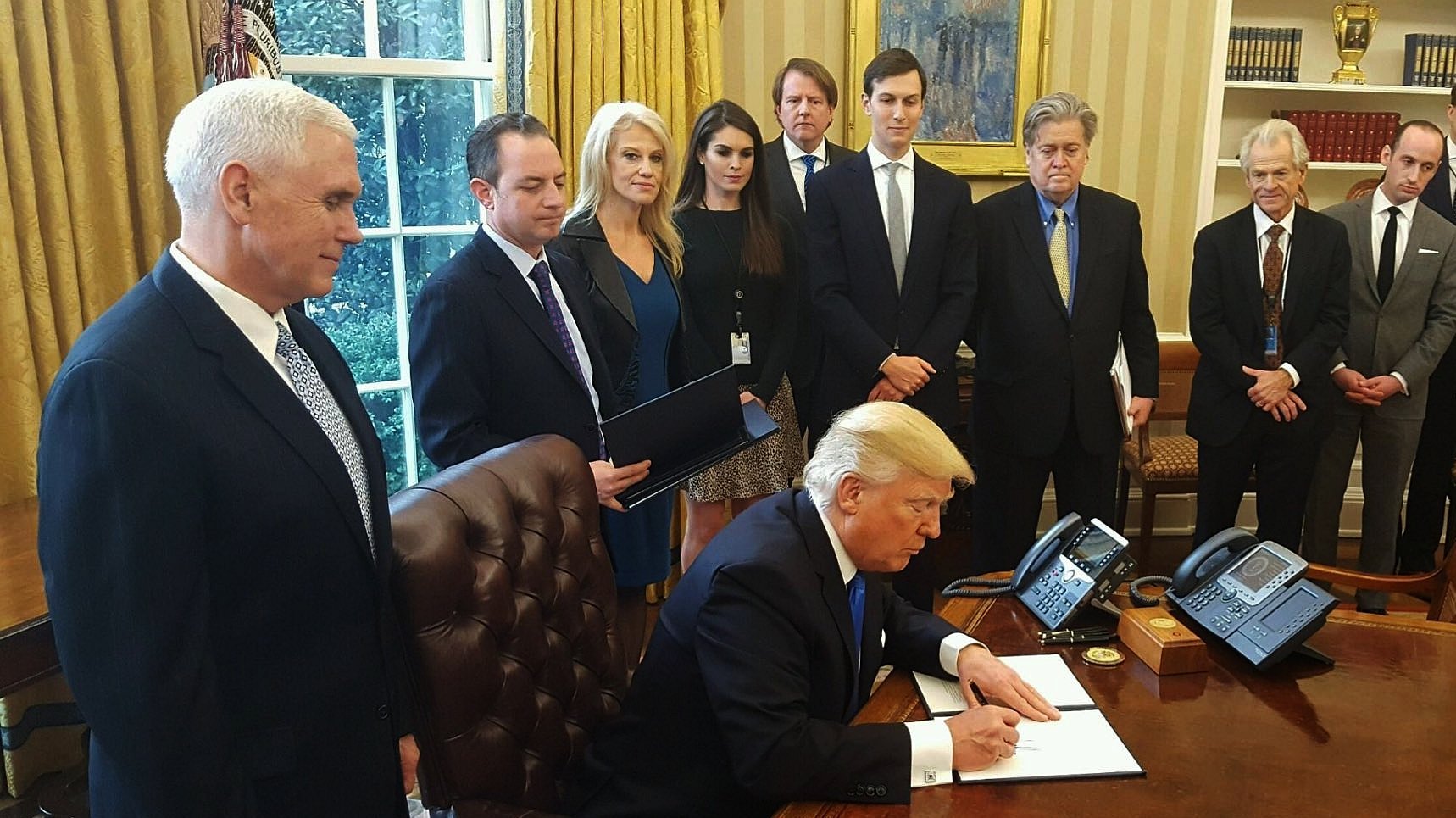 In his first month as President, Donald Trump has passed executive orders that have broken up families who have members holding dual citizenship. His national security advisor Michael Flynn was forced to resign over improper contact with the Russian state and he was been engaged in open conflict with the American establishment press. He has not divested himself of his business interests only the day to day running which he has passed to his Children. Trump is a clear threat to democratic norms.